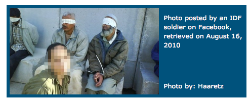 Some are making the case that this is akin to Abu Ghraib, but I would disagree. After all, while what happened in Abu Ghraib was beyond the pale in terms of human decency, the photos taken of soldiers jeering next to naked prisoners were never intended for public viewing on Facebook. Even now, Eden Abergil has locked her macabre mementos up behind a privacy wall, and there is no proof that she shows remorse or has even removed them from her personal galleries. Has the internet enabled us to further dehumanize the enemy by rationalizing that posting such things is “OK”? Or are we all  becoming more and more commodified by publicizing every detail of ourselves online, making these abused and violated Palestinians as just “window dressing” in the background of our internal lives? We’ve commodified our family, friends,  romantic relationships, personal interests, and our appearances in order to take part in this new world of socialization – why not commodify the POWs as well?